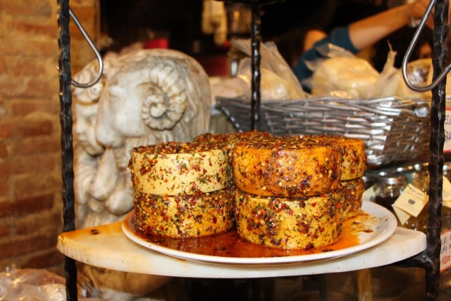 We stopped for lunch and some more wine-tasting at a local winery outlet with beautiful views of a valley below. This place called La Dogana is open on weekends during the busier months of the year, serving coffee and platters with a mix of locally produced cheeses blended with organically grown herbs.