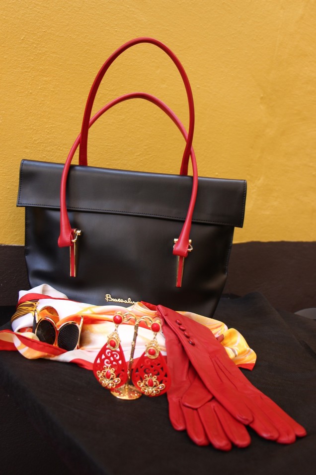 I accessorised the outfit with these fancy long earrings, a red designer handbag by Ripani and a chunky black ring. I am also sharing with you a choice of another beautiful handbag by Braccialini that I would also wear with this dress if I were to wear it with the boots.