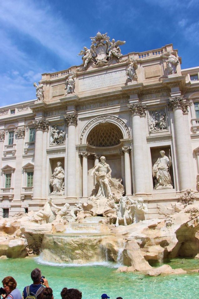 The magnificent fountain known for its beautiful sculptures made of travertine. You still see everyone throwing coins in the fountain, This seems to still be a popular past time, as over three thousand euro’s worth of coins are thrown into the fountain each day. These go to a good cause and each night the coins are removed from the fountain and used by a charity that helps those in need purchase food.
