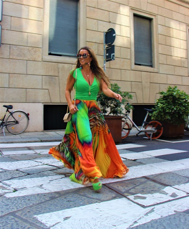 Music is a language of the soul and I feel it encompasses emotions and sound and the strings are able to reach the heaviest heart. Colours too can look as vivid as we feel too and it is a researched fact that the happier a person is, the more colourful the universe appears. Music is a more vibrant way of expressing oneself and it often reaches us in the most beautiful ways. I love wearing bright colours! This Fashion Week in Milan was no exception.