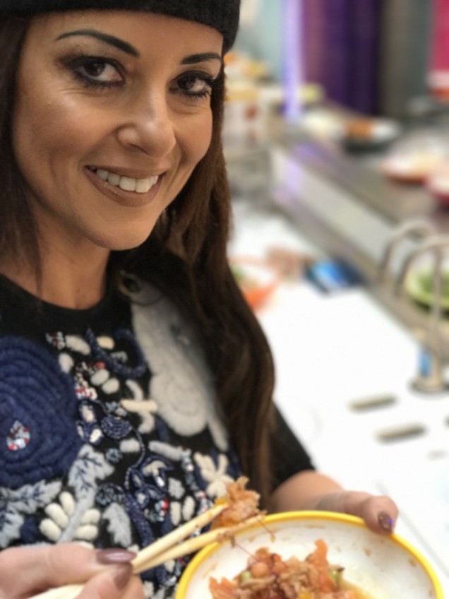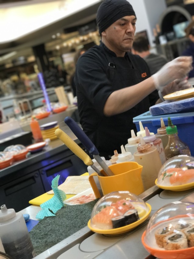 As always, to keep the lady happy, we had to do some shopping, just a little, so we went to Harvey Nichols where we bought some designer shoes and make up and then stopped for lunch at the Yo! the sushi place on the 5th Floor in the Food Hall, one which Marco had never been to before. Delicious and pleasant, you just choose the sushi as it comes round on the belt and then you are charged for the plates you have consumed. Perfect solution in between shopping sprees.
