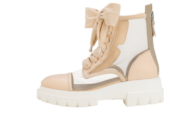 Travel also occurs between times periods and cultures like gladiator sandals reinvented with a feminine contemporary style and military boots made graceful by maxi bows and transparent details. A journey that begins in AGL workshops, where traditional Italian manufacturing techniques and technological progress meet in shaping high-quality footwear. A brand DNA representative Collection, possessing lightness and delicate femininity, respecting the family archives and AGL handmade strong tradition, offering iconic pieces.