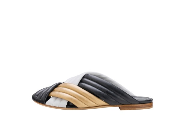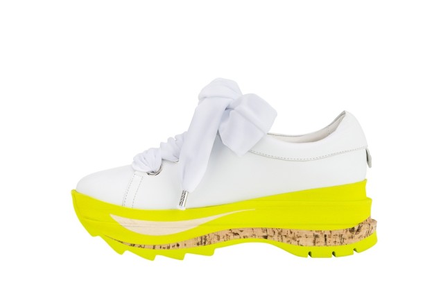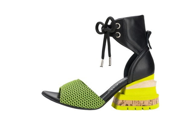 Sara, Vera and Marianna create their personal postcards, designing unique, evocative pieces, inspired by visited, or desired destinations. The color palette veers from soft desert sunset warm and neutral shades to exotic places bright tones and finally to international metropolises lights and contrasts. Skyscrapers and large architectural works evoke elegant, abstract designs, like the maxi sole model with layers of cork, leather and natural rubber in fluorescent color, or linear, conceptual designs like the geometrical shaped ankle boot, wrapping the foot like a glove, a distinctive mark of AGL footwear.