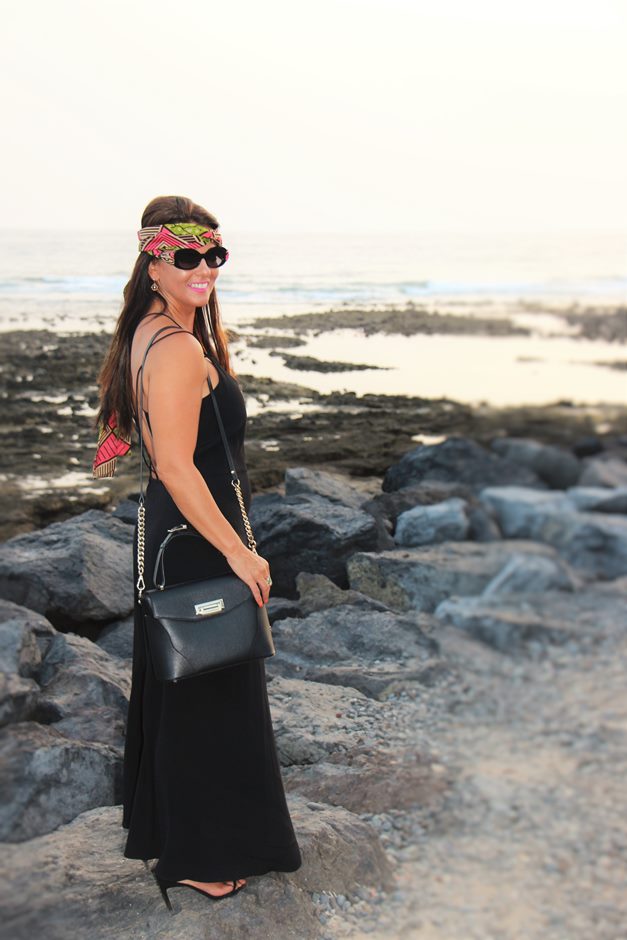 I fell in love with this black cotton maxi dress from Zara. I love the criss-cross design at the back and its light texture. I accessorised it with a bright pink cardigan also from Zara, my lovely Stuart Weitzman sandals from Rebelli and a black leather Ripani bag from Porto . With this look, I also loved wearing one of the latest semi-permanent matte lip gloss shades by Inglot.
