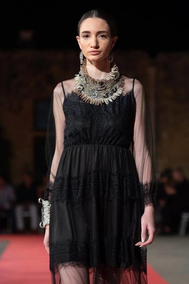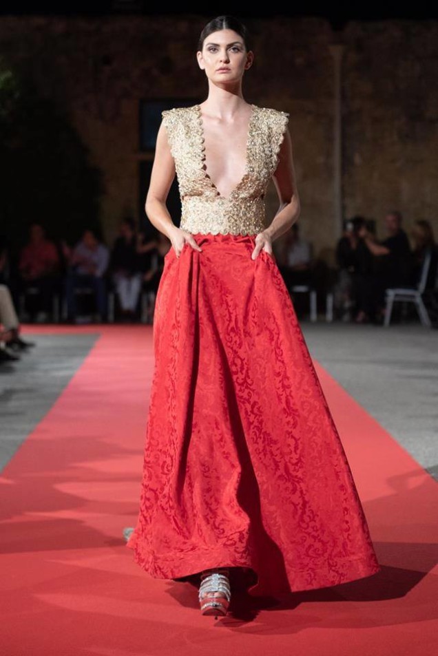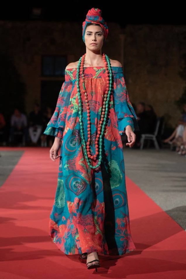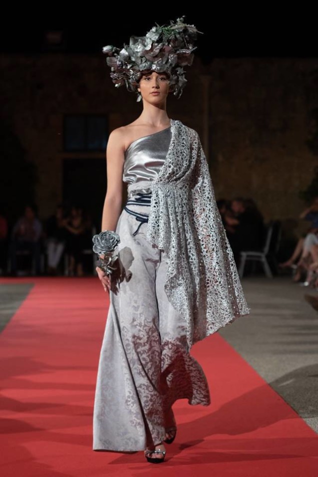 FROM CROATIA, we witnessed a show by SLADANA KRYSTIC a myriad of coloured gowns and sculptural floral inspired headwear. We saw a lovely selection of long dresses, and two piece outfits outlining the designer’s strength which is the manipulation of fabrics and mixing of textures to create show-stopping, memorable pieces for us to enjoy! Thank you Sladana for visiting Malta and for this very creative show.