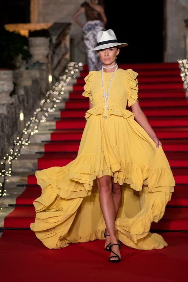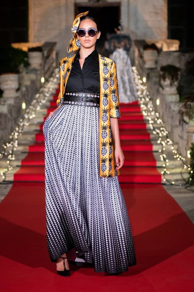 Italy couture designer GIADA CURTI showcased her enchanting JACKIE Collection which is for the woman who loves doing something that she loves. “This is the definition of happiness” Giada says in her interview with host Mark Caruana. Curti’s inspiration stems fromCapri in the 1970s, Jackie on the yacht. The whole concept does not just revolve around a dress, or a hat, or a crew neck of pearls. It is more linked to an attitude, a feeling.As for the garments, Jackie is a feast of geometric and floral patterns, lace joints, delicate transparencies. Lovely collection!