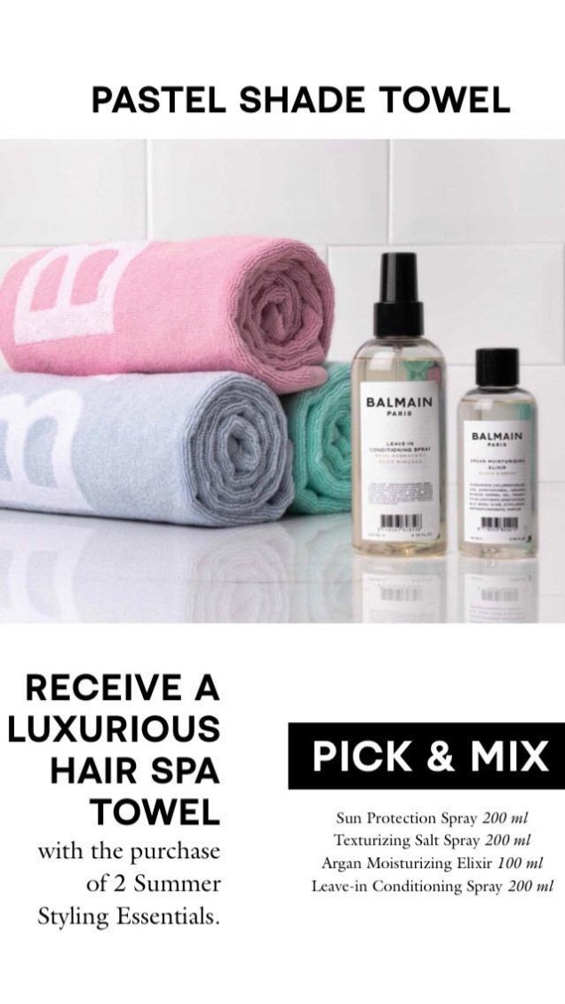 Receive a luxurious hair spa towel with the purchase of any 2 Summer styling essentials!