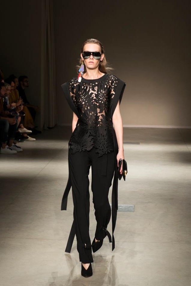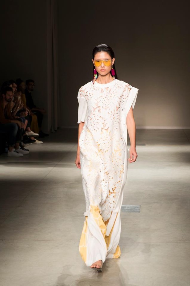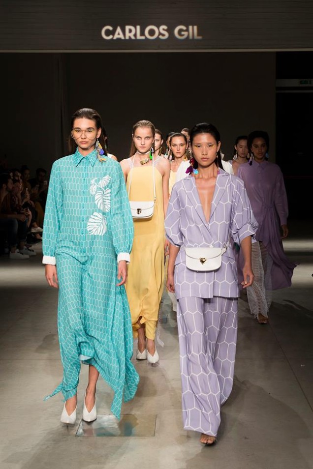 Designer Carlos Gil presented a divine selection of smart casual pret a porter pieces created for the confident modern woman who enjoys making a statement with finesse. On the runway at Milan Fashion Week, we saw clean prints with motifs that blend with geometric patterns inspired by architecture and nature. The same pattern occurs in different scales and colours, and the textures appear tone on tone, creating a new notion of soft layering and movement. Overlays reveal themselves layer-by-layer, overlapping textures, tones and transparencies on fabrics that appear flowy and comfortable for the modern lives we live today.