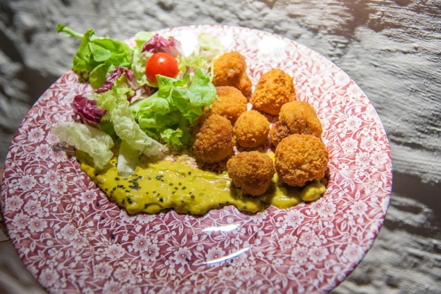 Crispy Mushrooms served with In-house sauce pickled veg and petit salad.