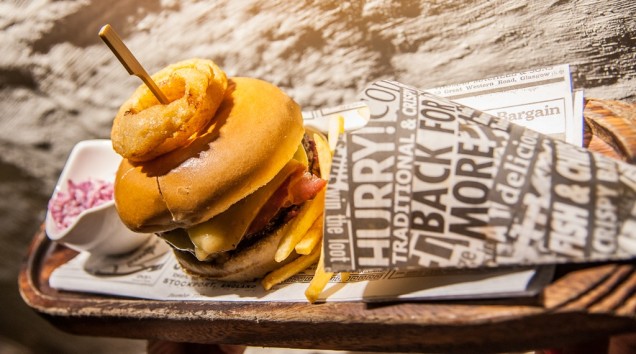 • Pulled Pork Burger with Old Amsterdam cheese, cabbage slaw, Smokey BQQ and crispy onions.
