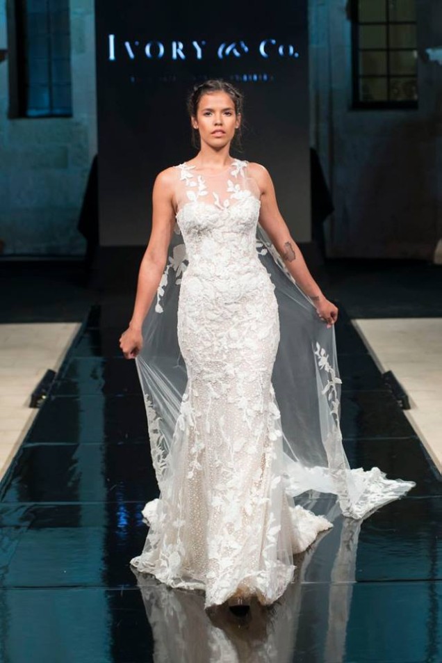 Next up was the fashion show with bridal dresses by Ivory & Co. This was the show to make all brides-to-be and their potential husbands drool! From embellished lace for the modern romantic to crystal-embellished fabulousness we witnessed a runway with the most beautiful dresses you can dream of for your big day. Feathers, bows, and capes are some of our favorite trends to come down the aisle. .Ladies the statement-back trend is here to stay. Scroll through some of my favourite lace motifs, crystal embellishments below and I’ll let the images speak for themselves.