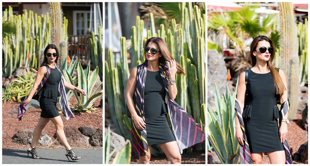 In these photos by Mark Thornton , I’m wearing a colourful Charles & Ron silk scarf (a gift from my husband this season) simply looped over a very simple little black dress which I bought while on holiday and I paired it with these Fersini sandals and these Versace sunnies from Vision Opticians. I really like the finished look.