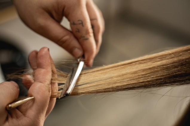 As for the removal, that’s even faster. The stylist drenches the tape bonds in a solute that loosens the adhesive, then gently wiggles the extensions off. Then, all you need is a couple of shampoos to remove all of the solution. Beware of extensions that require a remover containing acetone or alcohol, which can be harsh and drying if left on the hair for too long. As your hair grows out, the bond inches farther away from the root, and the further the bond is from the root, the more likely it is twist and tangle — and possibly reveal your well-kept secret.