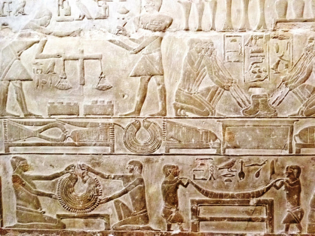One of the striking tombs we saw was The Tomb of Mererukawhich features unique paintings detailing the deceased involved in daily activities like fishing and inspecting workmen. Some of the best wall paintings are in the first room, where you can see Mereruka and his wife inspecting various operations, goldsmiths making necklaces and vessels, three statues being drawn to the tomb while a priest burns incense, and carpenters making beds.