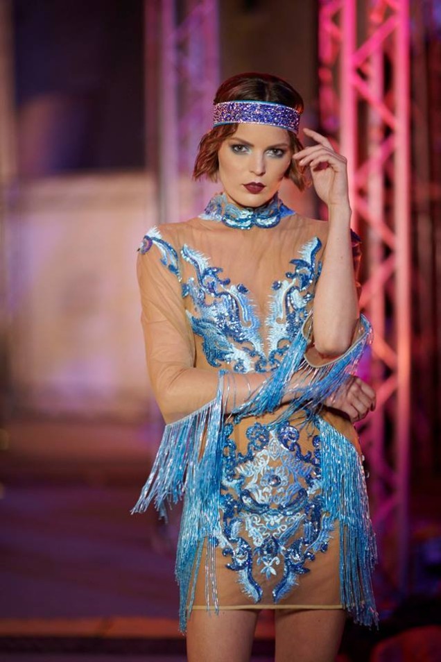 We witnessed a wonderfully presented fashion including dresses in different lengths and corsets in blue, white and grey. This brand is extremely classy and it is always a privilege to attend her show. The crowd enjoyed this show. You could tell by the reactions to every piece.