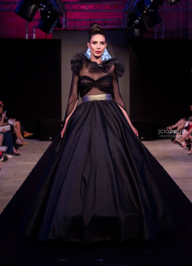 First up was the presentation Dejjem F’ Qalbna designed with the memory of her grandfather in mind. .Maria always remembers him creating models for balconies. Her inspiration stems from this. I have been observing this designer’s work and I m beginning to like it more and more, year after year. Although the presentation felt melancholy and emotionally sad due to the theme and the colour palettes were dark, I enjoyed the creativity and the variety of designs with use of various textures very much. I believe that her ability to create wonderful and classy designs using fabric manipulation is one of Maria Cutajar’s strengths.