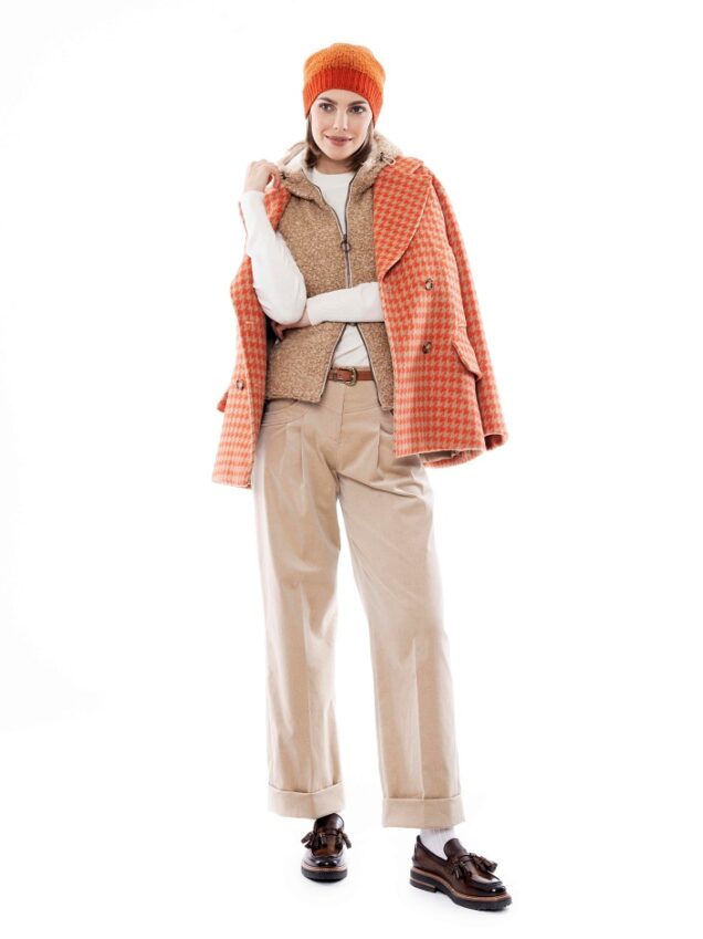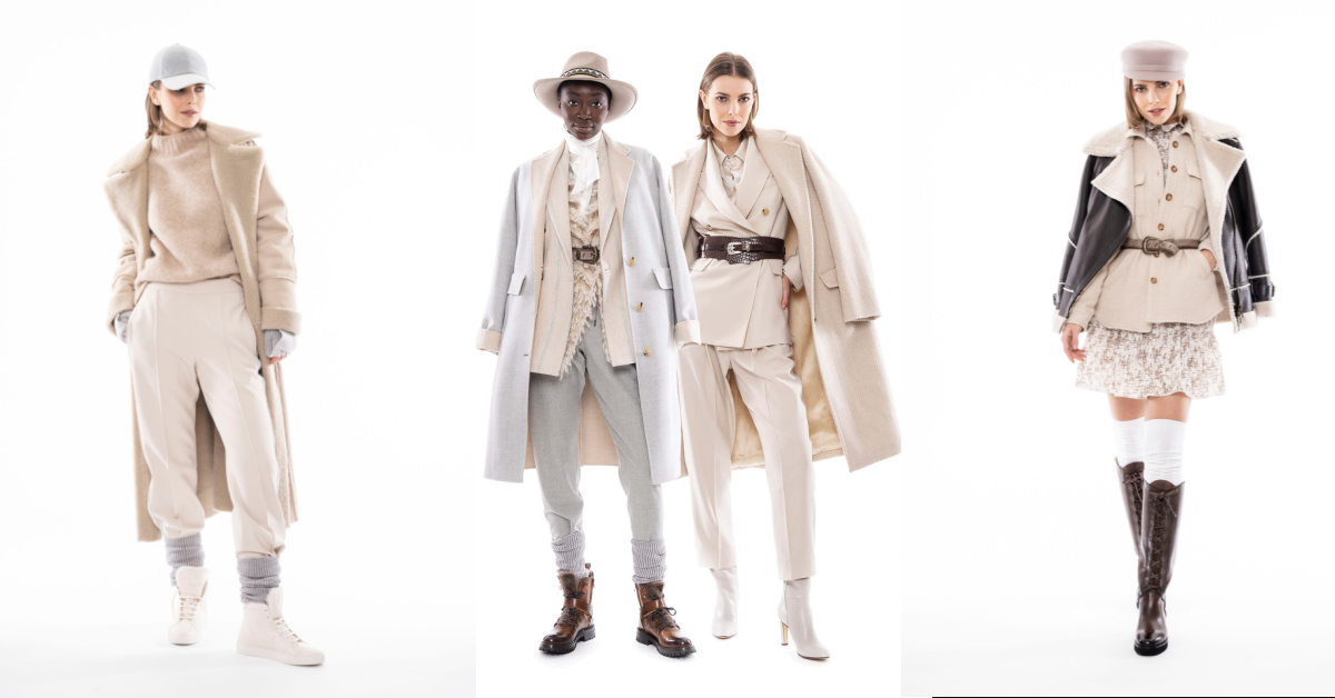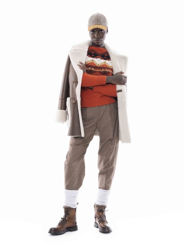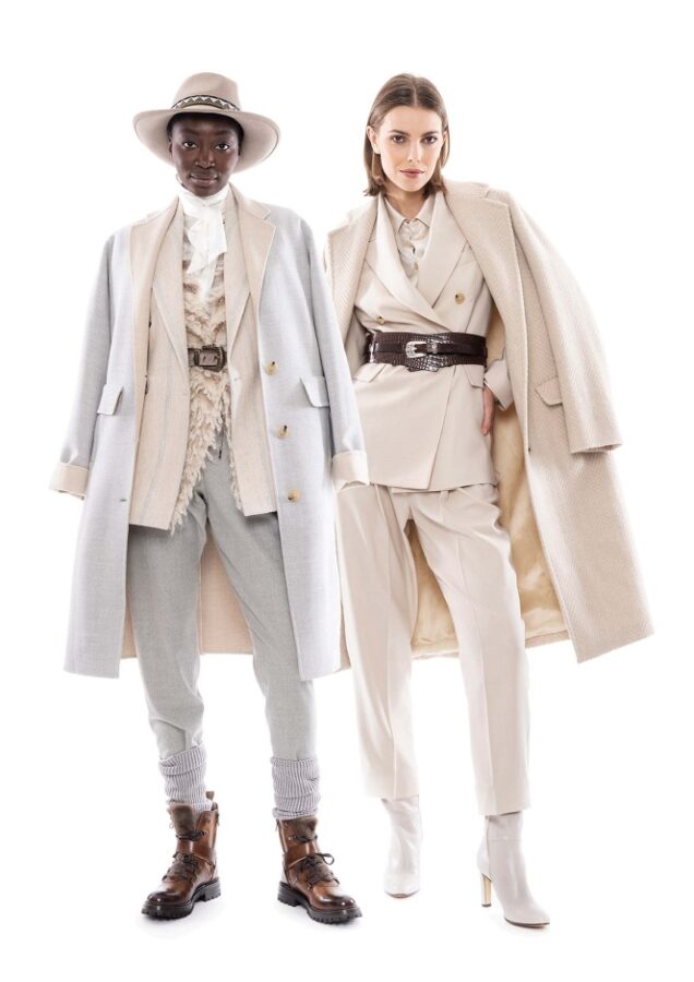 Next winter, the Eleventy woman will be wrapped in white and natural shades, inspired by those of animal coats: from native grays to sophisticated cachas combined with soft pinks. The autumn foliage warms up the shades of oranges to be combined with camel and brown nuances, proposed in different shades up to black.