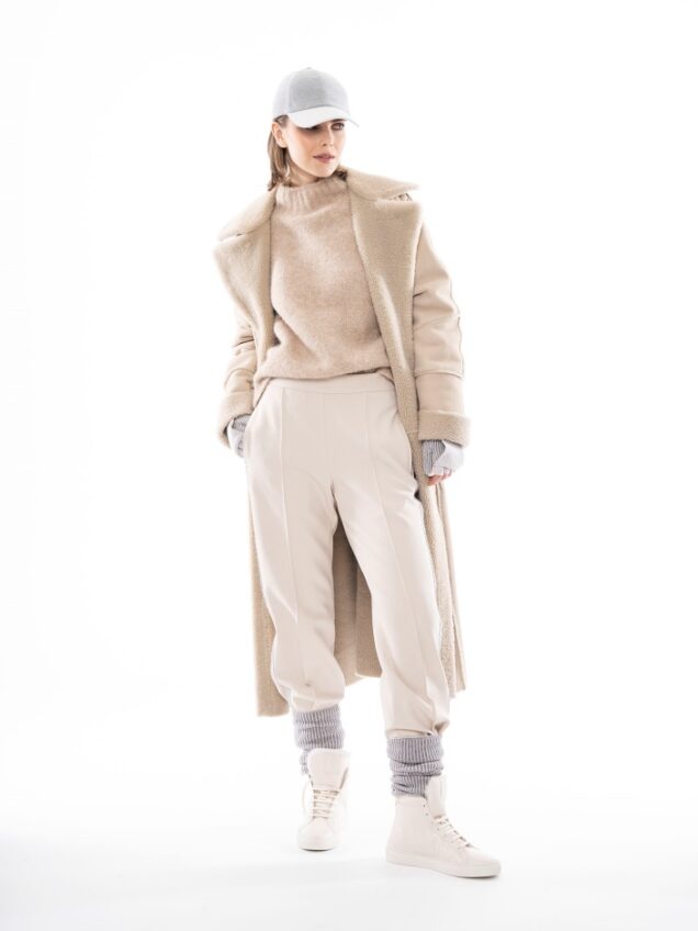 The shearling and tailored jackets with their soft and essential lines become a garment to be exhibited.