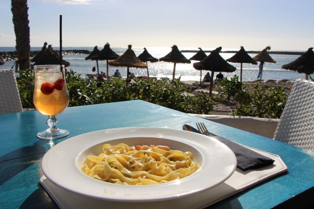 This time I wanted to enjoy a good plate of pasta in a place where the sunset view is beautiful. So I headed to one of my favourite places La Palapa Beach Club. This time I really enjoyed one of their special dishes – the egg tagliatelle with king prawns and cream complemented with a white glass of Cava served with a strawberry on top. Bliss! Ten on ten for taste and pasta quality.