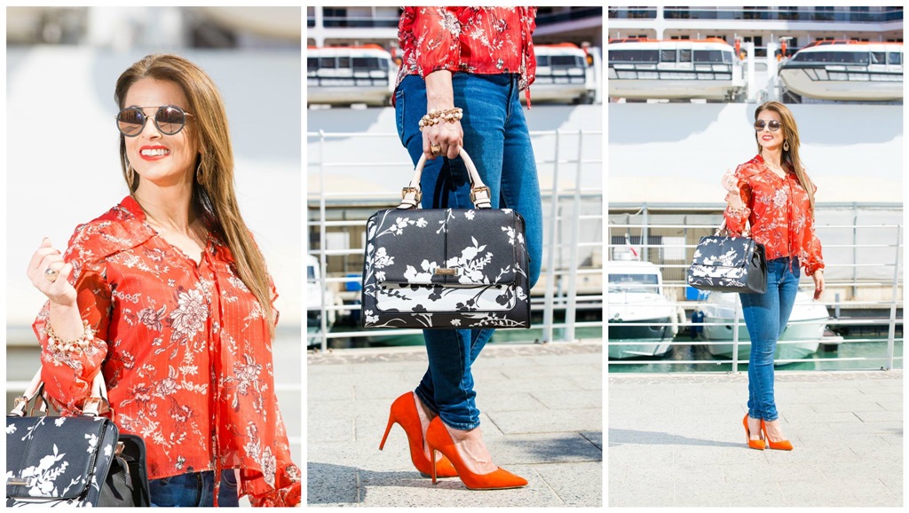 This shirt from River Island emits happiness and elegance. The pattern is pretty. The texture is light and it feels comfortable on the skin. Love love love it! Here I wore it with my skinmy stretchy jeans, brand new orange shoes and monochrome floral bag – all from River Island at The Point. I styled them with these Emporio Armani sunnies and to add an elegant touch, I wore these gorgeous rose gold Bronzallure long earrings, bracelet and ring from 202 Jewellery.