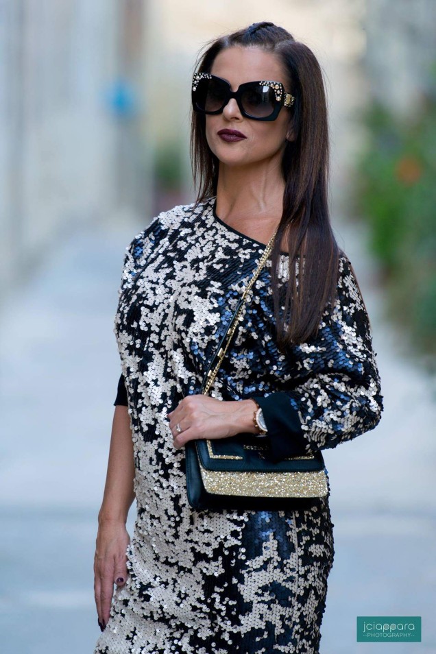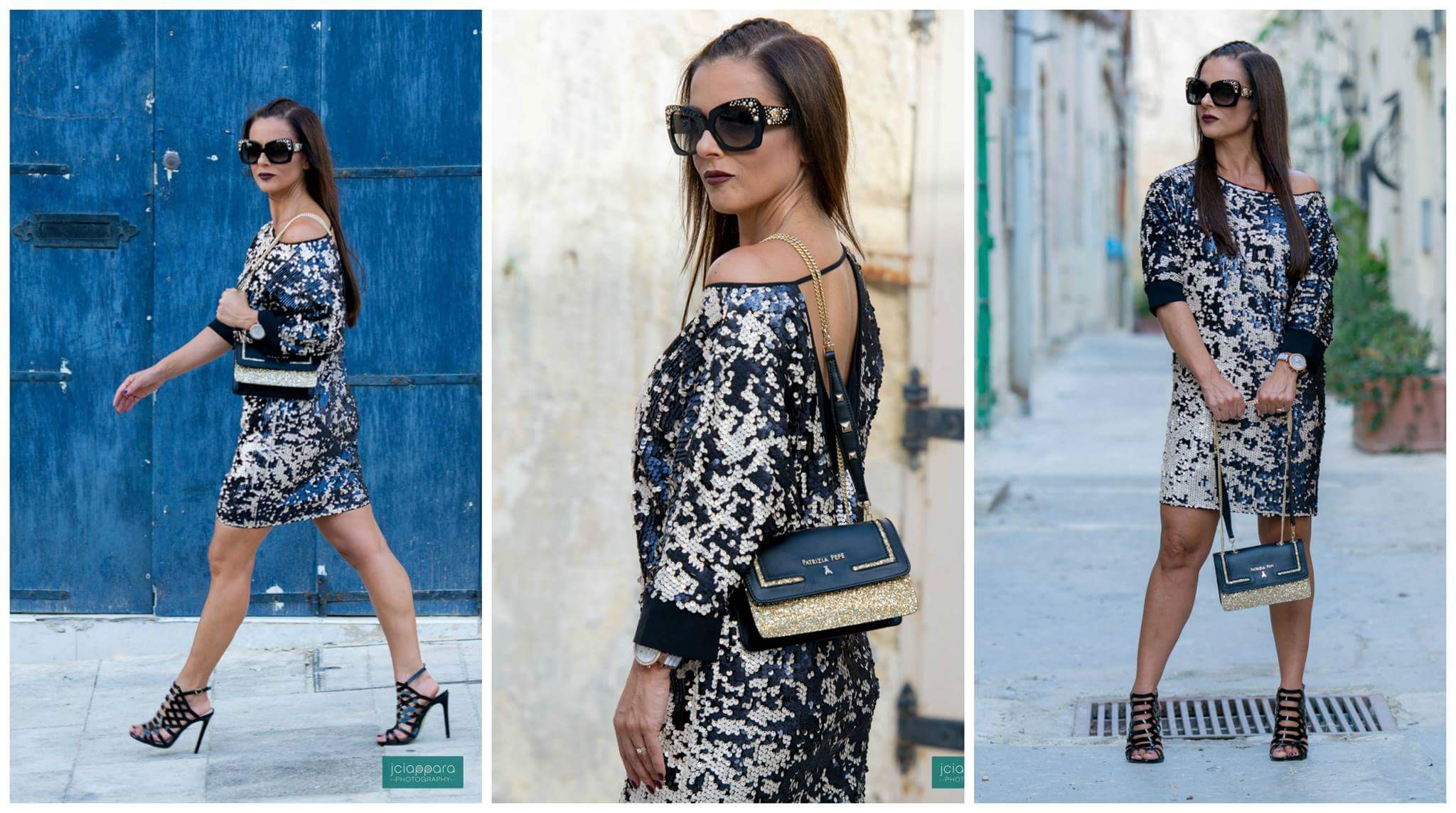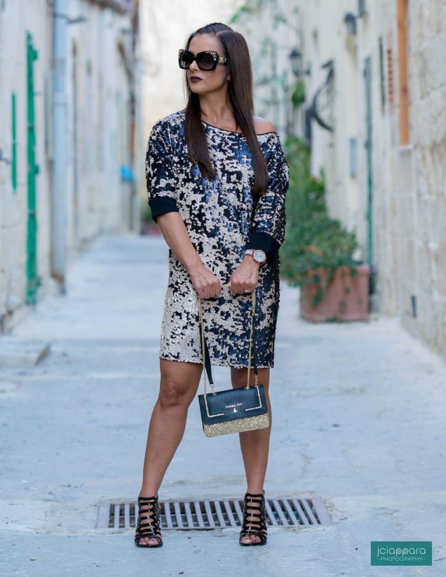Today in this blog, I would love to share with you this look I wore to a birthday party with friends in Malta’s Capital City – Valletta. This gorgeous dress by Patrizia Pepe from Syl Boutique was a dress I really had to get my hands on. Look at its detailing, its length and its colour scheme. Simply glamourous! I paired it with these statement sunglasses by Versace (which you had seen in my Travel Look blog), a Patrizia Pepe two-tone handbag and these stylish patent sandals by Fersini