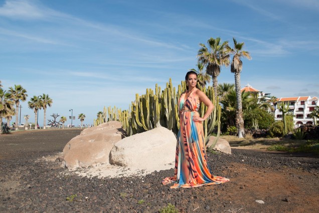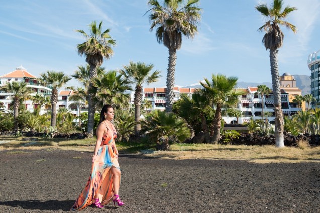 For this blog, I teamed up with professional photographer Mark Thornton and make-up artist Lilly Strange, both based in Tenerife. To showcase this beautiful colourful dress, a gift to me from Blondy Fashion, we chose the luxurious promenade of Las Americas as our backdrop.