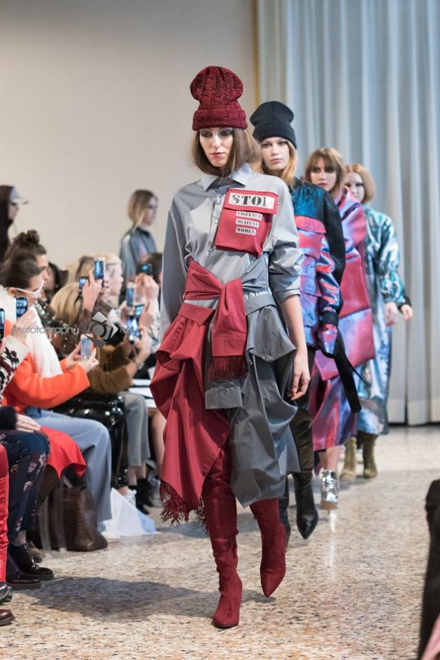 At least once in a lifetime one in every three women worldwide has suffered of either physical, verbal or sexual violence. With his new collection, GRINKO’S fashion designer Sergei who has always been committed to linking his stylistic vision to social and political issues, expresses together with indignation for the present, the hope that the new generations will know how to create a better future for all women. A world in which our daughters can live without Fear.