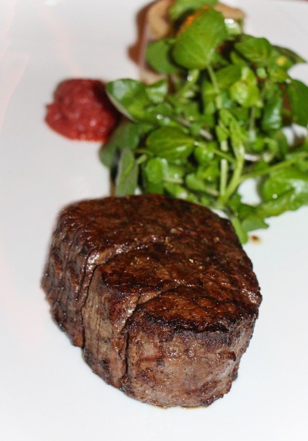 For meat lovers, this restaurant in Dubai serves you prime selected beef cuts, seasoned with the finest salt and pepper blend and grilled to perfection; heaven on a plate! – the most succulent, well cooked wagyu rib eye steaks ever. As mains, we ordered the Master Kobe Wagyu rib eye medium rare and the wagyu tenderloin beef, which came served with mixed vegetables on the side. Wow! Truly delicious.The dessert was also wonderful as to be expected