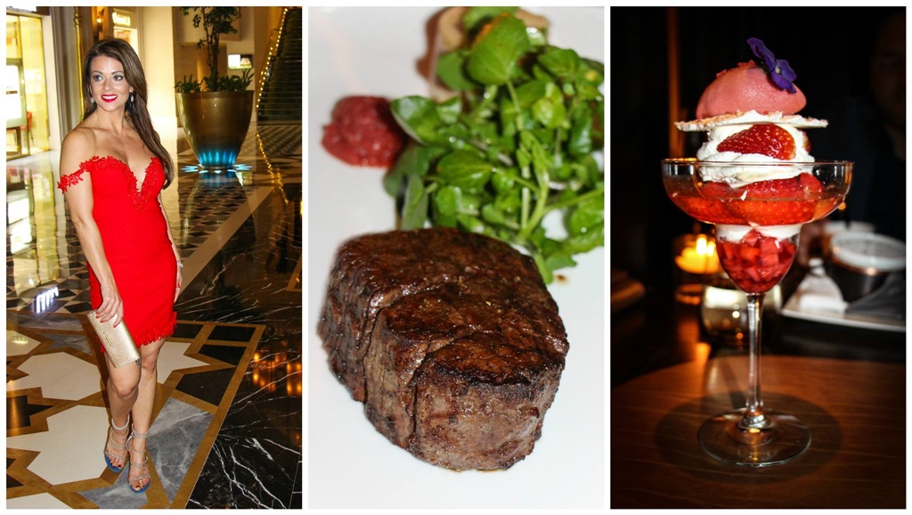 However, as a blogger who enjoys to share things I experience, I wish to begin by sharing one particular experience the first evening in Dubai at The Rib Room restaurant at our resort. It was my husband’s birthday, a day filled with surprises including a massage at the Talise Spa, surprise cake, wine and chocolates in the room, surprise gifts from me and the resort and a romantic dinner date. I wore my new red dress from London F Café, Stuart Weitzman shoes and Michael Kors purse, red Inglot HD lipstick and set out for our date night!!