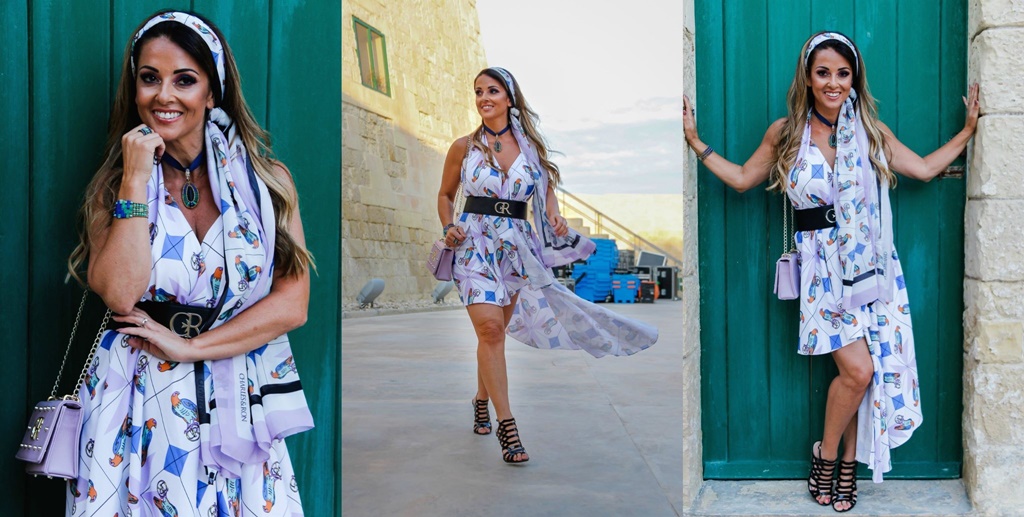 For the final night of Malta Fashion Week I wore a colourful outfit by local designers Charles & Ron. It is always a pleasure to wear their designs. They are so vibrant and reflect Mediterranean passion and positivity! This particular white shirt dress with a colourful print from the latest collection also has the Maltese cross which makes me smile. Maltese designers Charles & Ron have come a long way through their hard work and perseverance and their designs are now famous all over the world including New York, London, Milan and Miami. I am proud of my roots, and so proud to see their success. I am so proud of my roots too, being Maltese myself and this Fashion Week in Malta has once again been a blast! #MFWA19