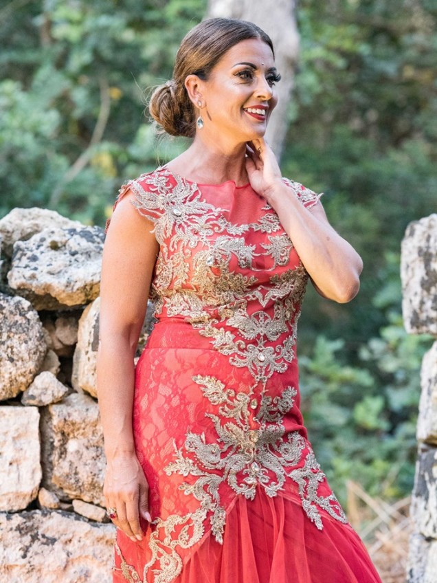 This red dress immediately caught my eye on the rack in the boutique and it gave me the feel of an Indian princess when I wore it. The gold intricate embroidery with the little gems and the style of it just took me to another place! The sweetest thing is that when I asked the owner of the boutique Jeff Francalanza what brand this dress is he said that the dress is by a well renowned Indian designer and since I have a soft spot for India, I decided without batting an eye lid that this would be the one.