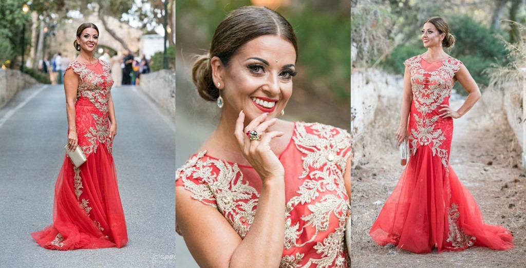 This red dress immediately caught my eye on the rack in the boutique and it gave me the feel of an Indian princess when I wore it. The gold intricate embroidery with the little gems and the style of it just took me to another place! The sweetest thing is that when I asked the owner of the boutique Jeff Francalanza what brand this dress is he said that the dress is by a well renowned Indian designer and since I have a soft spot for India, I decided without batting an eye lid that this would be the one.