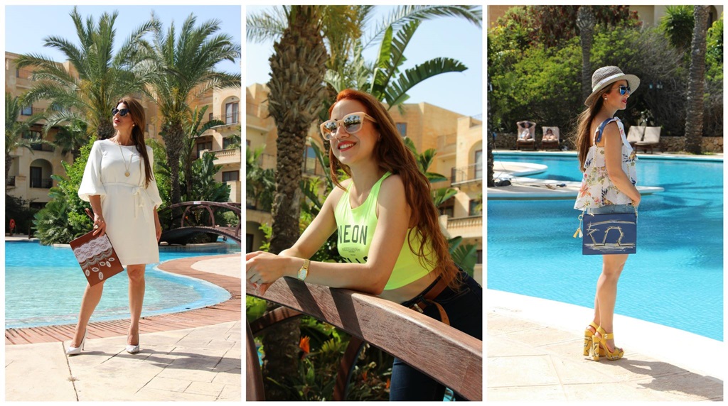This young lady is an interior designer with a love for fashion and dance and therefore creativity and expression is in her blood. To get to know her better in a relaxed atmosphere and to be able to get a sneak preview of her creations in advance of Malta Fashion Week 2017, last week I treated this talented lady to a day in Gozo with me for a day at the 5 star Kempinski Hotel San Lawrenz. We attended the 120 years anniversary event together and of course we took the opportunity to photograph some looks to be able to share them with you a week prior to Fashion Week. Have a look at her designs and you will agree with me in saying that they are so pretty and quite easy to wear with current fashion trends including colourful summer prints, plain basics and casual denims