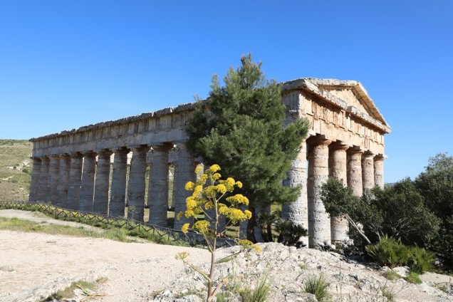 This is an archaeological site worth visiting. We spent a couple of hours enjoying the site and also the surrounding countryside which was wonderful especially on a sunny day in Spring. Built before 430 BC, the Doric temple is the focal point of Segesta. Just over sixty meters long and twenty-six meters wide, built upon four steps, with a total of thirty-six Doric columns. There are fourteen columns on each side of the building and six columns across the front and back. There is also an amphitheatre. At a diameter of around sixty-two meters, it is not very large but still pretty impressive. It offers a high point from which to view the surrounding valleys.