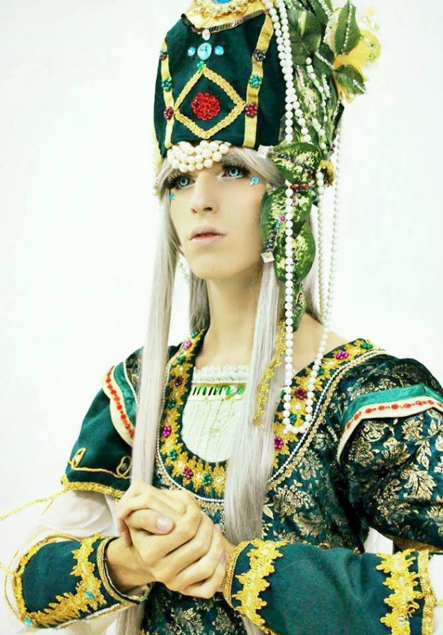 Ayumi Yamamoto in a costume he designed for a fashion project about elves.