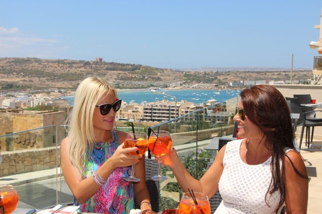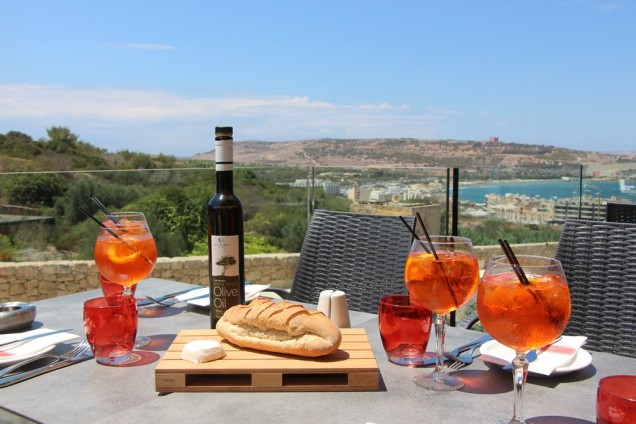 I very happily accommodated and invited my girlfriends Christine, Fallon and Rebecca to to join me. This way we could be able to see and taste different things on the menu and just have a girly lunch together with beautiful views of the Mellieha church and the valley below and the Mellieha beach in the distance.