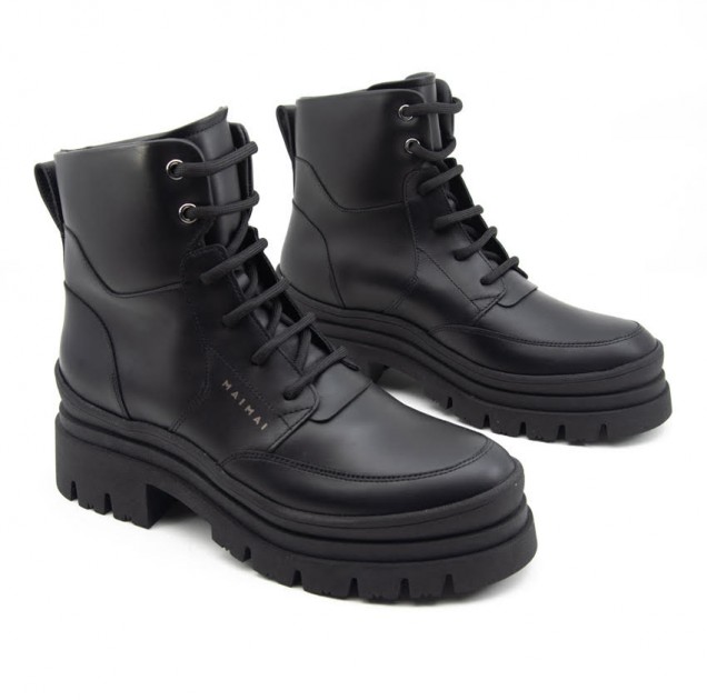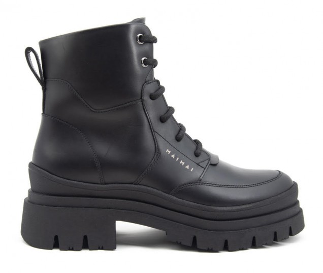 The classic military-inspired combat boots have an upper in premium high-durability calfskin “box” leather. The sole, a black-black and skilful mix of chunky and tank , is in thermoplastic rubber resistant to cold and insulating and guarantees maximum elasticity even at the lowest temperatures. They are created (like all MAIMAI production) by exploiting the energy of the sun thanks to the photovoltaic system the company has equipped itself with to protect the planet.