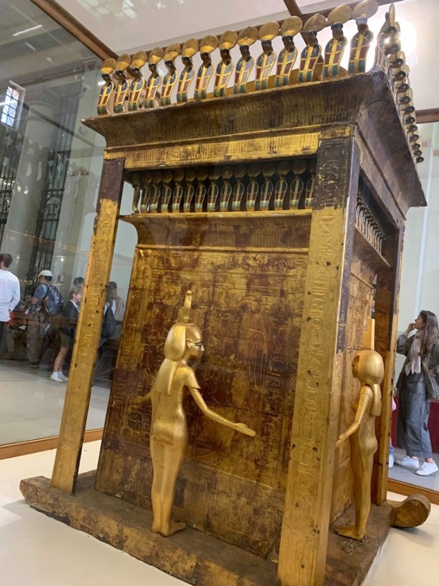 You will see his solid gold mask, decorated with turquoise, lapis and coral, also his gold mummy belt, cases and jewellery. These priceless items are in a separate room of the museum and no photography is allowed. You’ll just have to trust me that they take your breath away! When visiting Egypt, make sure to take a trip with your tour guide to this wonderful Museum and the one that is planned to be open in 2020!