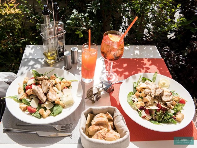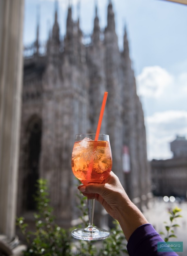 If you love your Aperol Spritz cocktails, and you are never satisfied with how you are served them and are looking for a trendy hangout place in central Milan then you have to stop at the place that serves this as their speciality drink, with beautiful views of Piazza Duomo. My friend and photographer Justin and I scored the best seats in the house at the Aperol Bar on a Sunday afternoon. Lucky us! Terrazza Aperol has indoor and alfresco seating, and packs out from lunchtime onward. We both ordered a chicken Caesar salad and a drink to enjoy on that warm, sunfilled day.