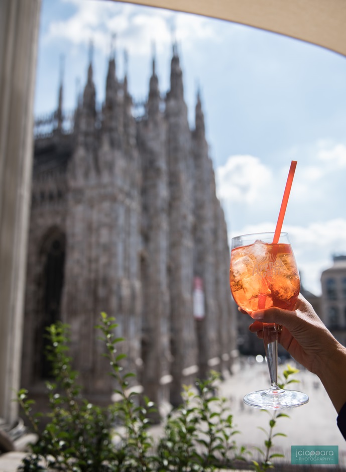 If you love your Aperol Spritz cocktails, and you are never satisfied with how you are served them and are looking for a trendy hangout place in central Milan then you have to stop at the place that serves this as their speciality drink, with beautiful views of Piazza Duomo. My friend and photographer Justin and I scored the best seats in the house at the Aperol Bar on a Sunday afternoon. Lucky us! Terrazza Aperol has indoor and alfresco seating, and packs out from lunchtime onward. We both ordered a chicken Caesar salad and a drink to enjoy on that warm, sunfilled day.
