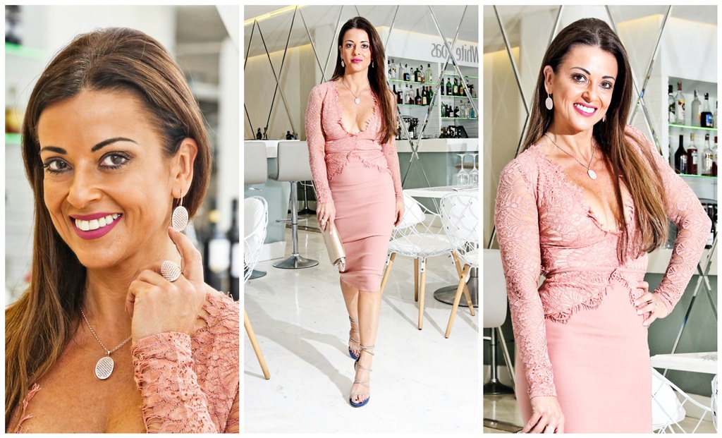 The dress is so elegant. I fell in love with the colour, the length and the lace detail at both the front and the back at first glance. When I wore it in the changing room at London F Café, it just spoke to me in dress language. “I’m yours! Have me now” – and it fit like a glove. So … how can you refuse! This was it! In Tenerife, the temperature was quite warm, and I got a bit of a tan too, so I didn’t need any jackets or capes to carry with me. I simply paired it with this beautiful three-piece Bronzallure jewellery set from 202 Jewellery, my pale gold Michael Kors purse and my favourite sandals this season – the Stuart Weitzman sandals from Rebelli .