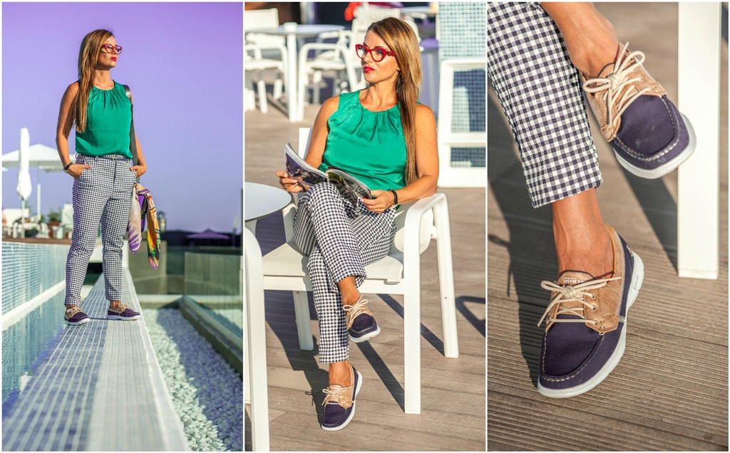 You will notice in this look, I am wearing a silky top and checked trousers from the new collection at Cortefiel, a Michael Kors bag and my new pair of Skechers. As you can see Im wearing my new sighted Dolce e Gabbana reading glasses, which I’m starting to get used to and love.
