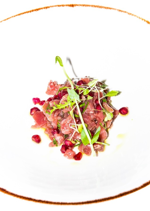 As starters, we ordered a selection of items to share including the Levantine-Spiced Grilled Octopus served with an outstanding aubergine puree. We also tasted their Local “Rossi” Prawn Carpaccio dressed with a lime ginger, mint grapes and extra virgin olive oil dressing. Also very tasty and delicate was the Tuna Tartare with pomegranate, mint and basil.