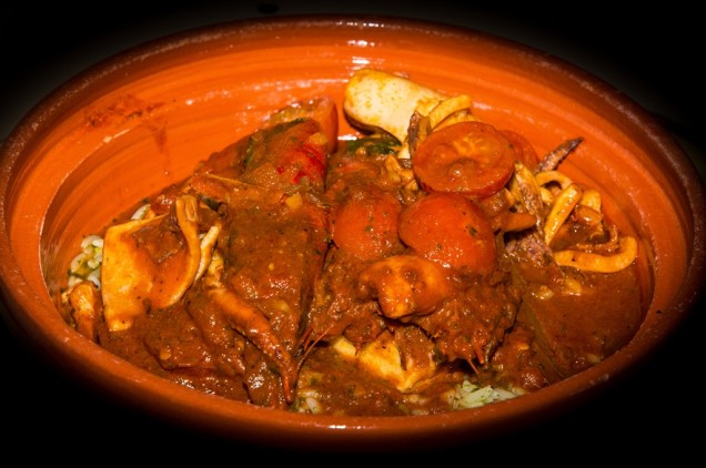 As mains we ordered some Fresh Local Bluefin Tuna, Grilled Lamb Rump and one of their specials I would say – the Tagine Samak – filleted white fish, fresh prawns and calamari baked with tomatoes in a traditional earthenware tajin, wonderfully flavoured with aromatic spices. All main dishes came with vegetables and delicious roasted potatoes, like the ones my grandma used to make!