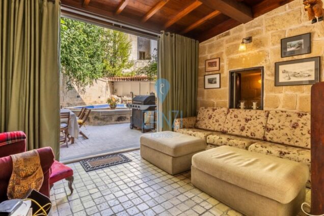 Situated in the tranquil village core of Naxxar within the UCA Area. This house has been beautifully converted to offer all the modern requirements trending in modern lifestyles, yet retaining many of its original features and charm. Layout comes in the form of an entrance hall leading to a formal sitting room with a real fireplace, a separate dining room with a log-burning stove, a fitted kitchen breakfast room, a guest toilet, living room leading onto a large outdoor space.