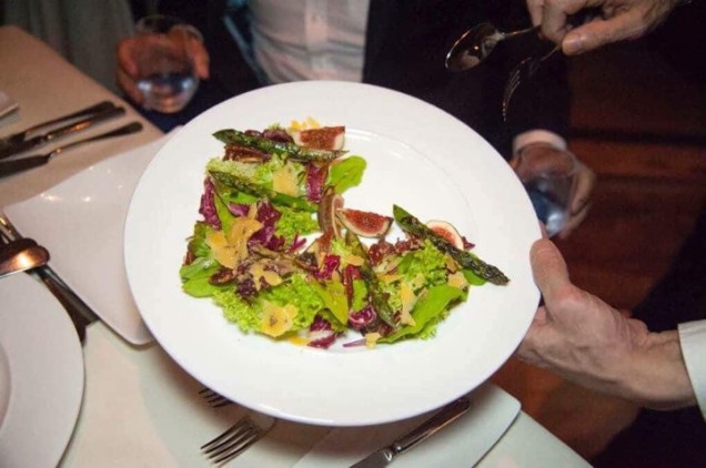 • Grilled asparagus, cheese, fig and pecan salad, truffle and Dijon dressing