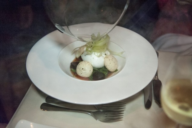 This dish came presented beautifully with a flamboyant twist. It was uncovered at table to reveal a musky scent and smoke puff into the air. Interesting smells are a part of this culinary experience and by this third dish my guests and I are really having fun commenting about the food and having a few laughs courtesy of Martin, our joker at table!