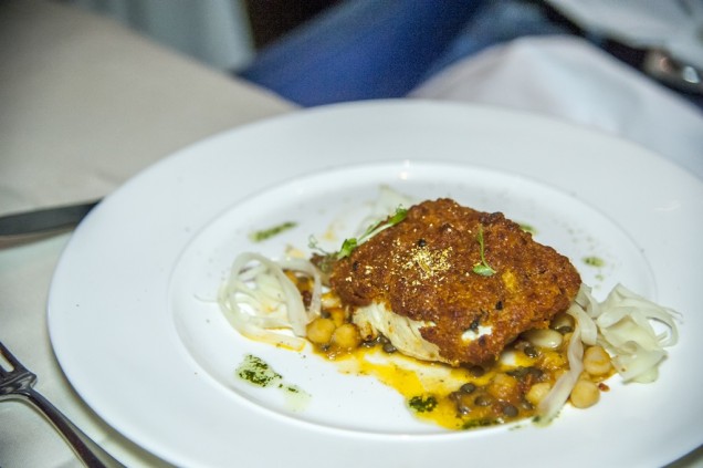 As a main dish, we were served meagre with a very rich tasting curry sauce. Grilled for a few minutes and served with gold leaf shavings and Mediterranean vegetables, it was one very inspiring dish. For fish lovers, this one was one beautiful dish worth visiting Quadro just for this. By this point, the three of us had eaten so many different dishes that we could not finish this one and we apologised for it.