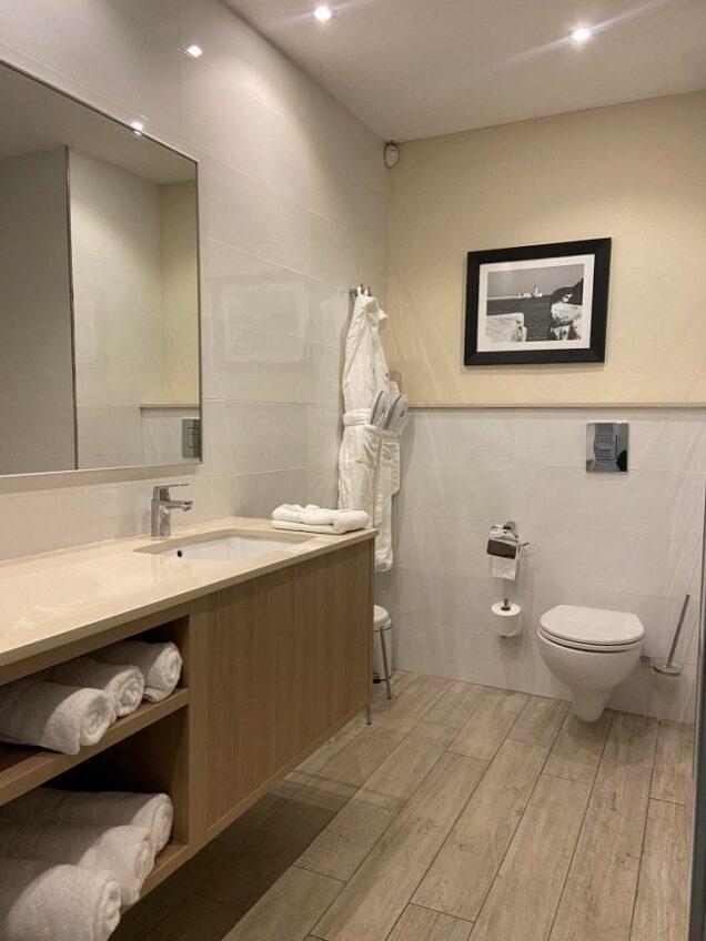 As you enter the stylish living room area, you cannot help but notice the bright and airy space of the room. We opened the door to find a welcome note and some complimentary snacks. That evening we enjoyed a drink on the spacious terrace for sunset, while taking in spanning views of the Mediterranean sea. This Executive Suite is extremely spacious, especially with the large terrace alongside it and providing that extra touch of lavishness that can turn a great holiday into a memorable one.