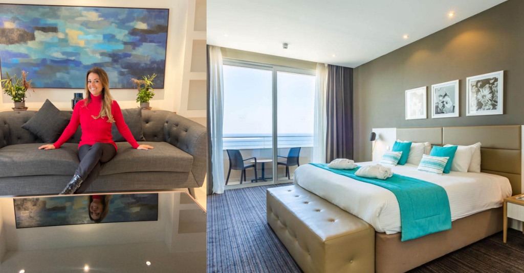 We were so excited to see the room. As many of you saw in my Instagram Stories @graziellecamilleri, the room is exquisite. Perched on the 5th Floor of this property nestled in a peaceful seafront location, it was a treat! A very large room with dimensions the size of a large apartment with its own private terrace overlooking the seafront.
